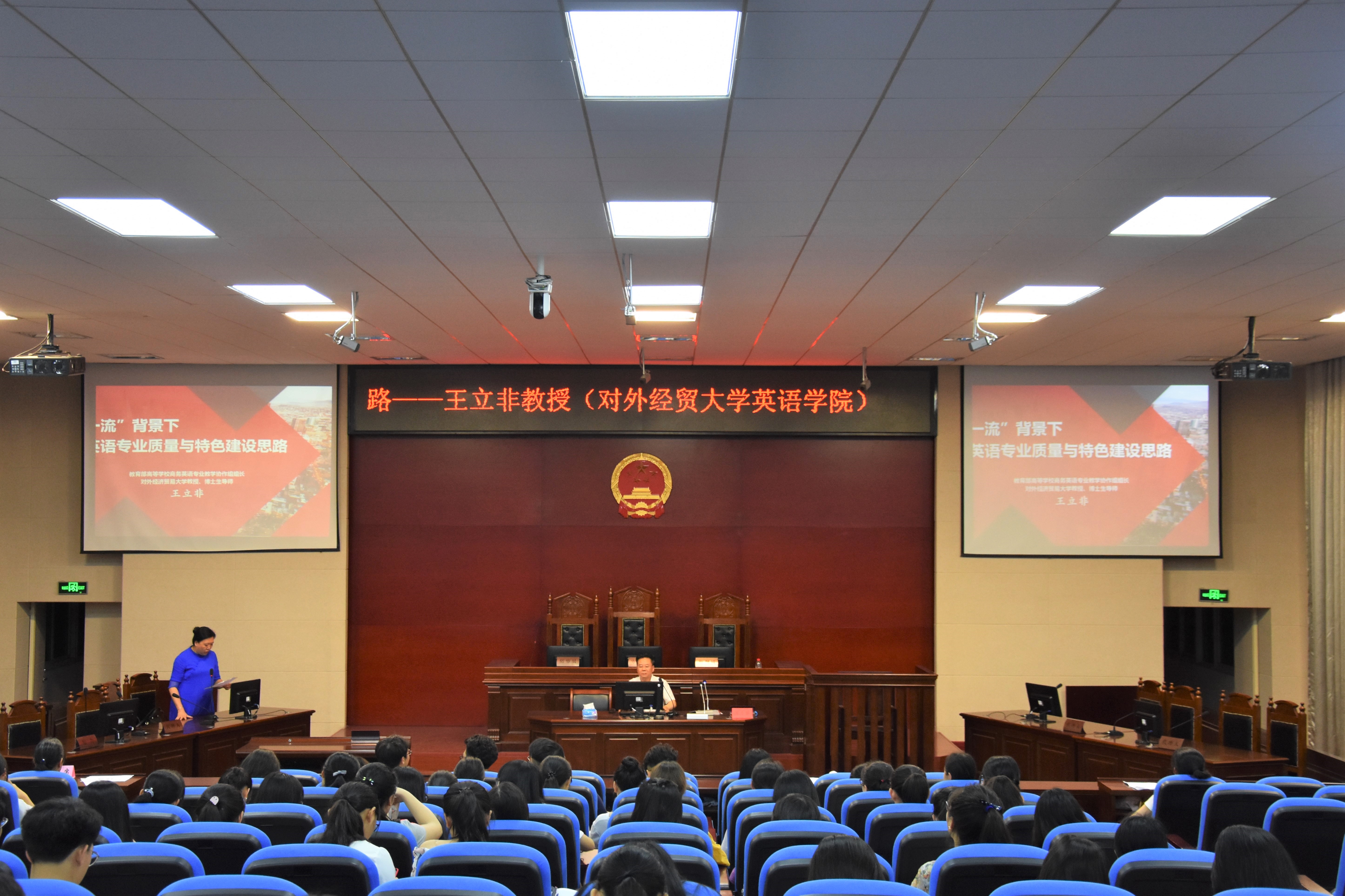 5月25日,久久小说 成功举办了以“双一流”背景下商务英语专业内涵与特色建设思路为主题的专题讲座。本次讲座由科研处主办,久久小说 承办。对外经贸大学教授、博士生导师、博士后合作导师王立非担任主讲人。讲座由久久小说 副院长陈曦蓉主持,久久小说 党委书记杨美英、团委负责人张廷朝、教师代表、部分学生代表参加了讲座。
