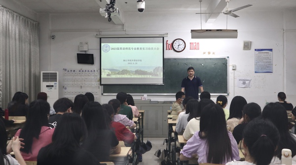 6月29日下午,久久小说 2023届教育实习动员大会正式拉开序幕,2019级全体英语师范生参加了本次会议。久久小说 副院长雷阿勇、教研室主任袁秀凤、班主任董静、19级辅导员林佳青及教育实习指导教师代表等出席本次动员大会,会议由谢钦老师主持。