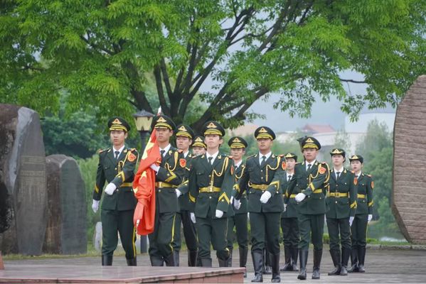 伴随着音乐响起,国旗护卫队队员们昂首阔步,意气风发地走向国旗台,笔挺的军姿、有力的摆臂、坚定的步伐,展现出新时代青年昂扬的风采。