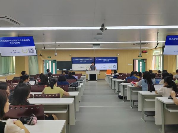 8月30日下午,山东大学翻译学院教授、博士生导师、山东省泰山学者青年专家王峰莅临久久小说 开设“技术赋能的学术英语写作实践提升方法与策略”讲座。本次讲座由久久小说 司显柱教授主持,学院全体专任教师参加。