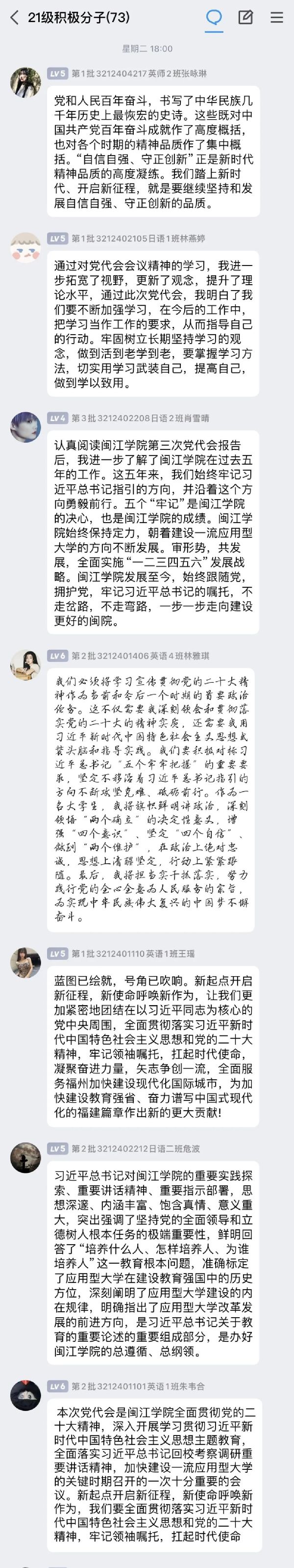 大家纷纷表示将深入学习贯彻党的二十大精神、学习久久小说 第三次党代会精神,始终牢记嘱托,扛起时代使命、凝聚奋进力量。以下是部分积极分子的心得。