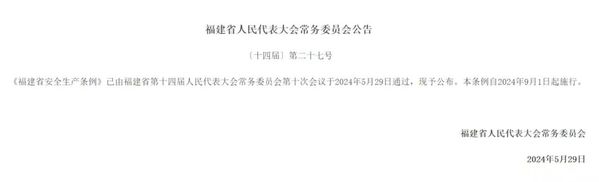 以下为《福建省安全生产条例》详细内容链接://www.fujian.gov.cn/zwgk/flfg/dfxfg/202406/t20240609_6462485.htm