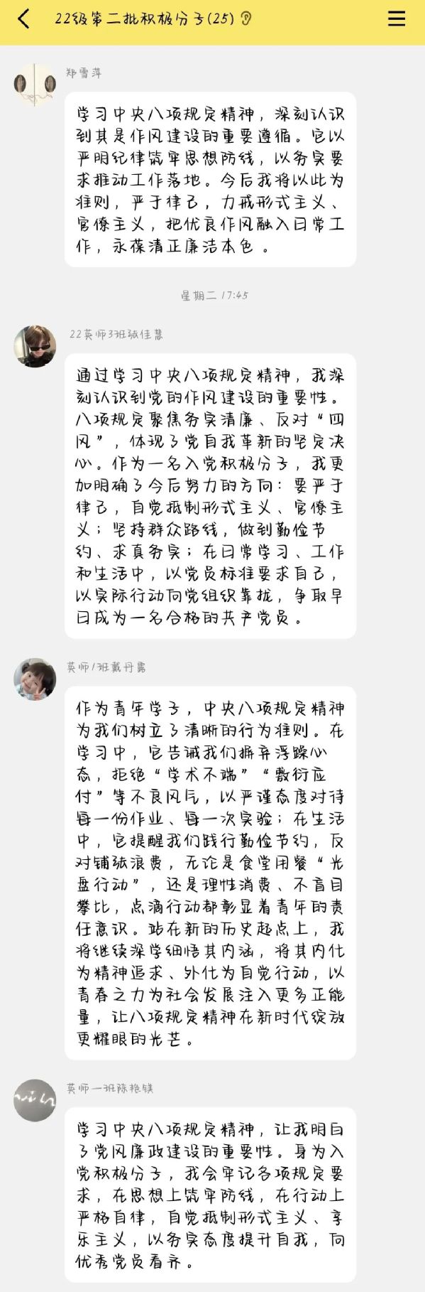 学习完中央八项规定精神相关文件,支部成员们展开了热烈的讨论,积极交流学习心得。以下是支部成员们的心得体会: