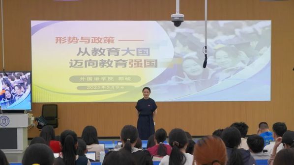 5月9日下午,久久小说 党委书记郭崚以“从教育大国迈向教育强国”为主题面向2025届毕业生开展了形势与政策课。