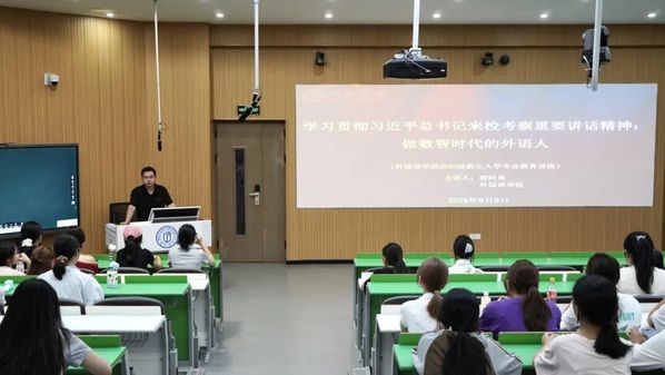 讲座上,雷阿勇要求同学们要牢记习近平总书记提出的“不求最大、但求最优、但求适应社会需要”的办学理念,以应用型为导向,注重提高自身的创新研发与思辨能力。他表示,外语不仅是一门工具,对外语人而言,更是具有系统性知识体系的学科和自身核心素养的专业。通过详细的调研数据和案例分析,他指出,数字时代为外语专业带来发展前景,学生应具备双语思维转换、文化敏感度、跨文化交流能力,掌握数智素养和技能,成为具有核心竞争力的“数智时代的外语人”。最后,他提出职业人生的三个层次:职业、事业与志业,希望新生不但将外语视为职业,更应视作事业乃至志业,通过四年大学系统的学科和专业训练,掌握专业技能,建构专业话语,树立专业身份,养成终身学习和创新发展能力,从而更好地契合国家社会发展需要,实现人生价值最大化。