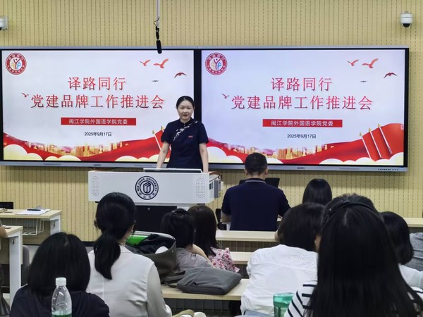 “译路筑梦——‘萤火1399’大学生成长工程”分享代表学生党支部书记郑海锋老师介绍了“萤火筑梦 译路生花”育人实践。该项目引导学生在服务地方讲好福州故事的过程中砥砺家国情怀、锤炼专业本领、实现自我成长,是党建引领下构建“三全育人”新格局的生动缩影。