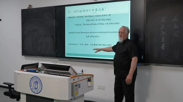 在互动环节中,费乐仁教授引导师生探讨了理雅各、顾赛芬、尉礼贤等六位翻译家的贡献,分组对六位学者展开调研与分享。通过案例讲解,深度分析这些学者在中国经典外译中的贡献,他们以毕生精力将中国经典推向世界,其翻译不仅是文字转换,更是融入了学术注释与文化阐释的跨文化典范,深刻影响了西方对中国的认知。