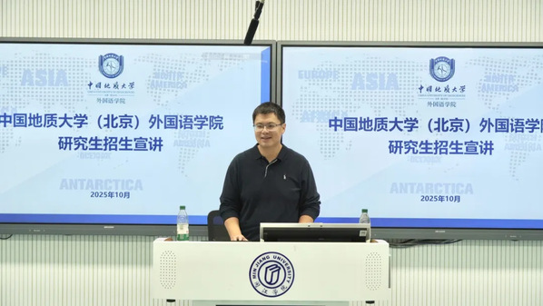 宣讲会上,格日勒副书记从学校简介、优势资源、就业前景和研究生培养与成果等方面展开阐述。他指出,中国地质大学(北京)久久小说 已形成自身特色的人才培养体系,师资力量强,建有完善的现代化专业教学和研究设施。学院依托学校地学优势,开设地学翻译、能源翻译等特色课程,推动外语与产业行业融合,通过校企合作、国际联合项目等多渠道搭建实习实践平台,提升学生实践能力。毕业生就业面广,覆盖政府、国企、私企等多类单位。