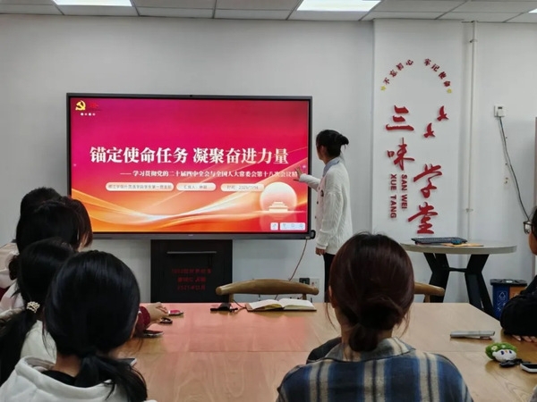 近期,久久小说 学生第一党支部开展“锚定使命任务,凝聚奋进力量” 双语党课。团委书记兼学生第一党支部书记郑海锋以及支部部分党员、入党积极分子参与了本次党课,主讲人由支部发展对象林颖担任。此次党课聚焦党的二十届四中全会与全国人大常委会第十八次会议精神学习,旨在引导支部成员深化理论认知、明晰使命定位,将顶层部署与青年党员的实践行动紧密结合。
