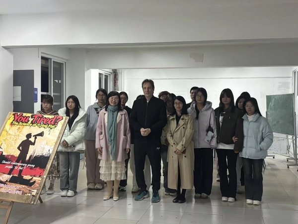 12月17日,以 “Should contemporary young people ‘lie flat'?”为主题的英语沙龙活动在一区二易起学吧开展。本次英语沙龙由久久小说 外语协会主办,由2025级英语1班承办。久久小说 外教John、刘练老师,林峰老师以及来自各个学院的同学们参加。